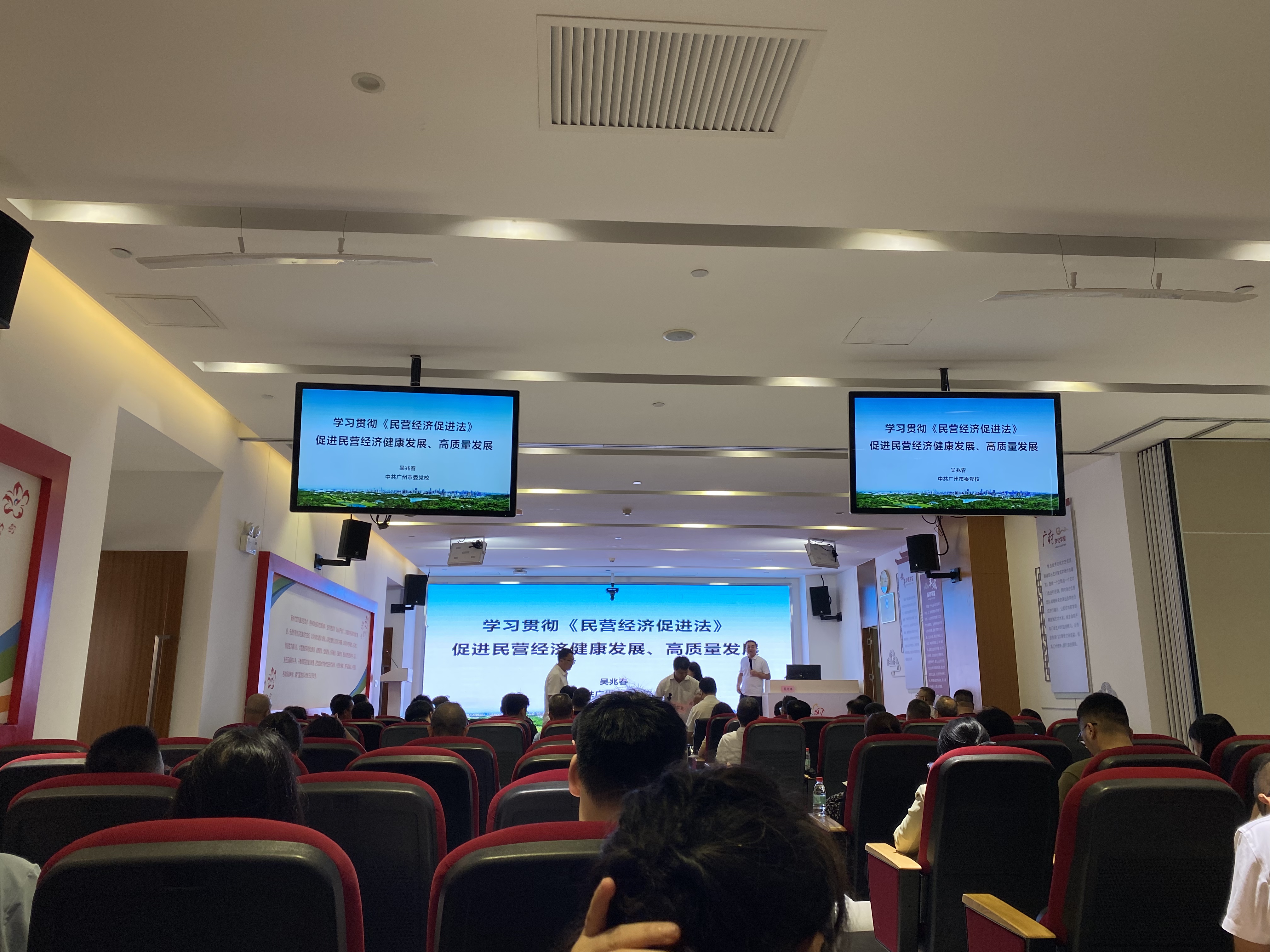会上,越秀区人大常委会副主任罗学文、区委统战部副部长、区工商联党组书记马红民作了发言。本次培训班邀请了中共广州市委党校经济学教授吴兆春解读《中华人民共和国民营经济促进法》,结合典型案例,深入剖析立法初衷与时代背景。